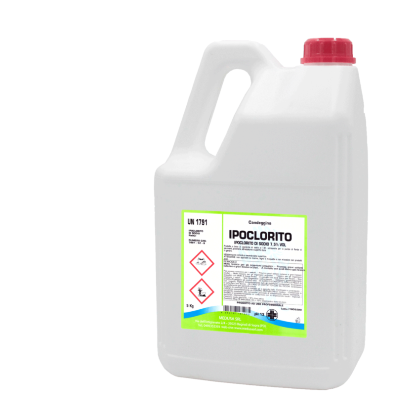Prodotto a base di ipoclorito di sodio utilizzabile per pulire superfici dure e attrezzature. Trova applicazione nel settore industriale (industrie alimentari, enologiche, lavorazione latte e conserve, produzione e confezionamento bevande). Destinazione d’uso: Superfici dure e attrezzature.Modalità d’uso: Utilizzare puro o diluito a seconda della superficie da igienizzare. NON MISCELARE con prodotti acidi.